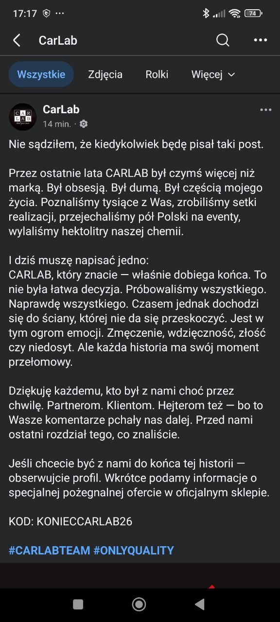 Moderator Domel Opublikowano 12 Grudnia 2025 Moderator Zgłoś Opublikowano 12 Grudnia 2025 1 godzinę temu, Mumins napisał(a): Pierwsza powłoka od Good Stuff (3-letni grafen) Jestem "zakochany" w Zvizzer Grafen'owym - trzeba bedzie na wiosnę sprawdzić GS