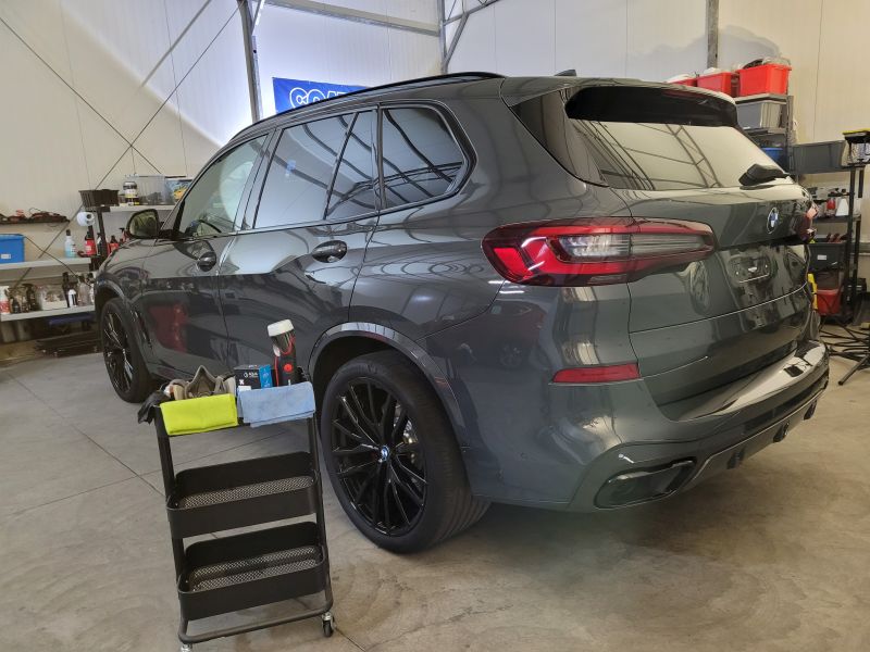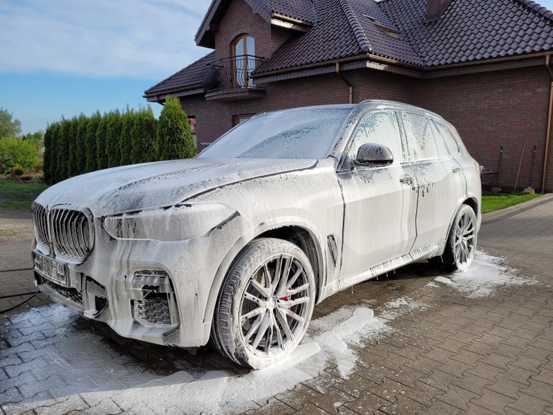 Moderator Streat Opublikowano 1 Lipca 2022 Moderator Zgłoś Opublikowano 1 Lipca 2022 Witam wszystkich, tym razem trafiło mi sie praktycznie nowe auto na małe dopieszczenie. BMW X5 w niesamowitym kolorze Dravit Grey który w cieniu jest zwykłym szarym kolorem a w słońcu pokazuje niezłego pazura . Trochę urozmaicę relacje i w tym przypadku znaczna większość chemii pochodzi od @ADBL Mycie/dekontaminacja: -ADBL Shampoo Pro -ADBL Yeti -Mac Prickbort 124 -ADBL Vampire Liqiude -ADBL Tire and rubber cleaner -ADBL APC -Claytowel ADBL -Pędzelki Work Stuff -Szczotka z Lidla -EZ Detail EZ-GO Brush -Karcher K520 Wnętrze: -ADBL Interior Cleaner -ADBL Matt Max -ADBL Hybrid Glass -ADBL Leather Cleaner -Scrubpad SCS -ADBL Leather Conditioner -Elite Detailer Gum shine -Odkurzacz karcher MV3 -Pędzelki Booski -Pędzelki dexter Polerowanie: -Evoxa HDD15 -Evoxa HDD21 -Flex PXE -Krauss S75 -Pomaranczowy pad One Stepowy (ADBL/Royalpads) -Niebieski Pad Cuttingowy (ADBL/Royalpads) -Pasta ADBL Hard Cut -Pasta ADBL Super Polish -Pasta ADBL Perfect Finish -ADBL Wipe Out Zabezpieczanie: -Aqua 9H -Aqua Booster -Korrek Pro Glass Coeat -ADBL Tire Dressing Tak wiec zaczynamy na początek standardowo zobaczmy z czym bedziemy musieli sie zmierzyć: Tragedii nie ma także zaczynamy od mycia kół: szampon ADBL Pro do lepszego domycia kół: Zestaw gotowy Na początek opłukanie z luźnego brudu i wlatje ADBL APC w nadkola ładnie rozpuszcza brud to pomożemy mu troche nadkola ogarnięte to pora na opony w akcji ADBL Tire and rubber cleaner: Felgi mocno brudnie nie były wiec oprysk z ADBL yeti 1:10 plus mycie szampone dały rade koła ogarniete to pora na spłukanie Przechodzimy zatem do lakieru, auto nie byłoi mocno brudne wiec ADBL yeti sprawdzi sie idealnie: do tego ADBL Shampoo Pro: brud rozmiękcza wiec pora na detale: szczeliny ogarnięte to pora na spłukiwanie Zaczynamy mycie ręczne, rękawica chińczyk plus adbl shampoo pro auto umyte i opłukane wiec wlatuje pricbort: dałem mu chwile na popracowanie, auto wzglednie nowe i w miare czyste wiec nie było za duzo do zbierania Wlatuje Vampire Liquide: całość auta wypracowane wiec pora na spłukiwanie: Ponownie piana wlatuje na auto: i zabieramy się za glinowanie, recznik glinkującu od ADBL'a bardzo fajnie się układa na załamaniach BMW całe auto zrobione wiec spłukujemy ponownie: i odrazu suszymy, pogoda była bardzo dobra i fajnie sie wysuszyło na dworze do wysuszenia Work Stuff King Nie zapominamy o wnękach z których zawsze wylatuja hektolitry wody... Auto czyste i suche to można wjechać na garaż: Dywaniki wyjmuje i zabiera sie za ich mycie: Dywaniki ogarnięte Aquo na garażu wiec na początek zajmie sie komorą silnika: przykurzona co najwyzej wiec tylko lekko przetarłem kurz, nie lubie lać wody po silniku a tutaj to nawet nie było konieczne: jak widać nawet zwykły interior cleaner może poradzić sobie z brudem pod maska silnika Na początek średnia kombinacja, maszyn Evoxa Hdd 15, pad pomaranczowy one stepowy i pasta ADBL Super Polish No to parę słów o paście ADBL Super Polish, pasta bardzo wydajne praktycznie kilka groszków i spokojnie mozna nią bardzo długo polerowac. Świetnie układa sie na padzie i panelu zapach jest obłędny i uprzyjemnia nam prace. Pasta wydaje sie być tłustawa i długo można nia pracować ale przy tym docieranie jej to czysta przyjemność Siła ciecia też bardzo fajnie wyważona i mozna nią naprawde sporo wyciąć a przy tym pasta pozostawia bardzo dobre wykończenie. A przy tym pylenia nie zauważyłem przy pracy. Wydajność pasty 10/10 Zapach 10/10 Przyjemność z pracy 10/10 Pylenie nie zauważalne Siła cięcia fajnie zrównoważona pod względem wykończenia Efekt na tym lakierze był zadowalający jednak mówię zobaczę jak zachowa się pasta Hard Cut na tej samej kombinacji czyli HDD15 i pad One Stepowy Jest fajnie ale jeszcze troche brakuje widać że lakier bardzo twardy wiec wskoczyłem z maszyna HDD21 pad niebieski cuttingowy i pasta ADBL Hard Cut Docieramy suchą fibra odtłuszczamy kolejna zbieramy to co zostało suchą fibra: No to pare słów o paście ADBL Hard Cut. Tutaj ponownie jak w przypadku Super Polisha bardzo przyjemny zapach. Pasta bardzo wydajna, dosłownie pare groszków na suchego czystego pada i można nią bardzo długo pracować. Docieranie pasty to czysta przyjemność a wykończenie jakie pozostawia na twardym lakierze jest bardzej niż zadowalające Pylenie występuje tylko wtedy gdy damy za duzo pasty i nie czyścimy pada tak to praktycznie nie ma. Pare razy sprawdziłem nie wydmuchując pada jak długo mozna nią pracować aż do zapylenia to tak max 2-3 raz uzupełnieni pada pasta i występuje niewielkie pylenie. Wydajność pasty 10/10 Zapach 10/10 Przyjemność z pracy 10/10 Pylenie przy czyszczeniu pada praktycznie nie występuje Siła cięcia bardzo dobrze zrównoważona. Idealnie nadaje sie ta pasta jako One Step przy twardych lakierach bo pozostawia bardzo dobre wykończenie ADBL dobra robota z pastami oby tak dalej i czekam na opakowania 1L! No to skoro juz mamy odpowiednia kombinacje dopracowana to lecimy dalej Lampy jak na nowe auto troche zmeczone życiem, tutaj w ruch poszedłflex pxe, pad one step pomaranczowy od adbl i pasta Super Polish pod rejestracja był nalot prawdopodobnie konserwacji: Wipe out bardzo dobrze sobie z tym poradził słupki piano tez nie miały łatwego życia na początek Hard Cut na padzie niebieskim i maszyna krauss s75 dalikatny hologram pozostał wiec poprawiłem Perfect Finishem ADBL PXE i Czerwonym padem finishowym i wyszło prawie idealnie o tej paście jeszcze nie moge duzo powiedziec bo tylko słupki nia zrobiłem ale na pewno sie pobawie nią wiecej auto wypolerowane i odtłuszczone 3 razy: to pora zabrać sie za powłoke, wybór padł na Aqua 9H + booster Aqua z pacy nie mam zdjęć bo przy aqua trzeba się spieszyć taki o to mam efekt po aplikacji: z zewnatrz powłoka sie utwardza to pora na środek: 