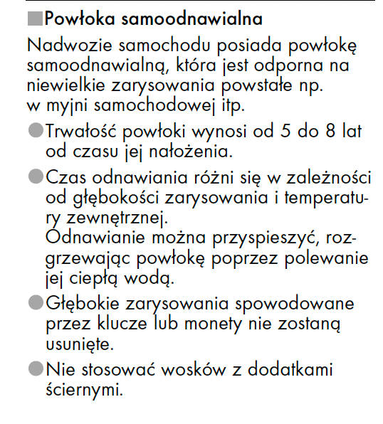 zeea Opublikowano 2 godziny temu Zgłoś Opublikowano 2 godziny temu Ja bym zapytał w salonie co to za powłoka, jak o nią dbać i gdzie oraz z jakim odstępem czasu ją serwisować. Jeśli faktycznie tam jest coś 5letniego to szkoda to usuwać. Nałożyć zawsze można coś samemu w późniejszym terminie. 1